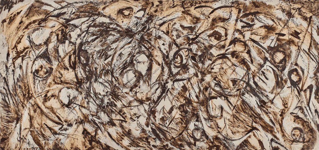ISABELLA DELEO: At first, I don’t really know what I’m looking at. I see a swirl of black and brown brushstrokes on a giant canvas.